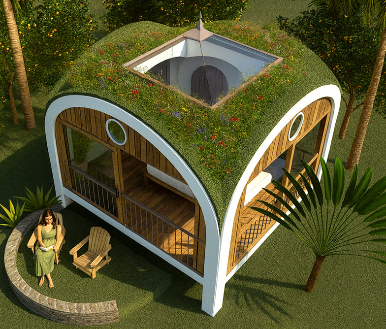 Biotekt domes — circular materials, earth‑integrated, low energy.